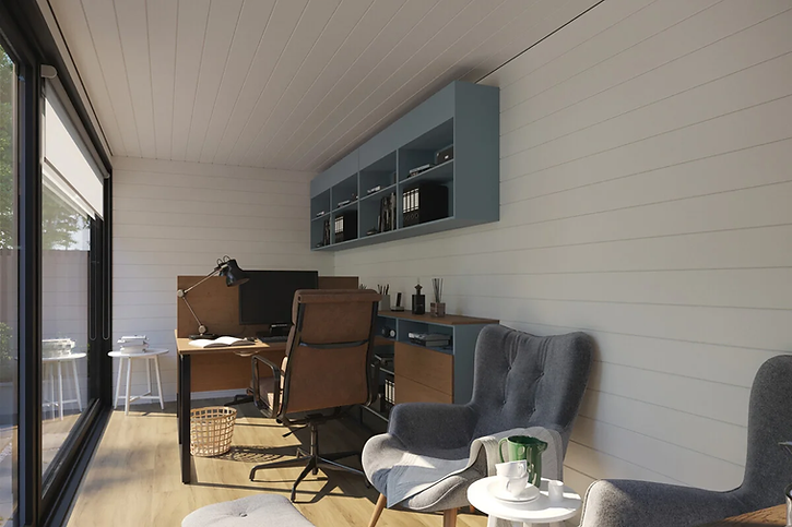 Durch die sorgfältige Wärmedämmung ist das V-5-Containerhaus ganzjährig nutzbar. Wo immer Sie 13 Quadratmeter sicheren, trockenen und warmen Raum benötigen, können Sie ihn mit der Möglichkeit konfigurieren, jederzeit an einen neuen Standort umzuziehen. Ausgestattet mit hochwertiger Doppelverglasung in Türen und Fenstern, Eichenparkett, Innen- und Außenholzarbeiten, Steckdosen und LED-Strahlern können Sie es als Gartenraum für die Freizeit, als Büro im Garten, Gästezimmer, Gartenhaus, Yoga nutzen Zimmer oder Poolhaus. Optional können Sie eine elektrische Fußbodenheizung oder einen Elektroheizkörper gleich mitbestellen.