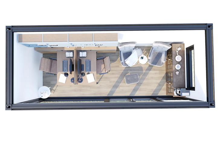 Der Containerboden wurde entfernt und durch einen neuen wärmegedämmten Boden ersetzt. Als Bodenbelag wurde Eichenparkett verwendet. Für Sie bedeutet das Komfort, Stil und Haltbarkeit, die über Generationen hinweg Bestand haben.