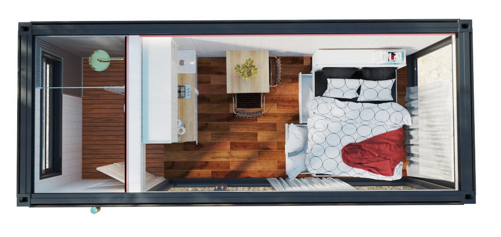 Tatsächlich sind die Strukturmaterialien von Seecontainern von ausgezeichneter Qualität und Festigkeit. Sie sind so konzipiert, dass sie Feuchtigkeit, Stößen und verschiedenen Drücken standhalten. Sobald sie mit schönen und langlebigen Materialien und Geräten renoviert wurden, werden sie zu Tiny Houses mit komfortabler Innenausstattung, effizienter Isolierung und daher sehr ökologisch.