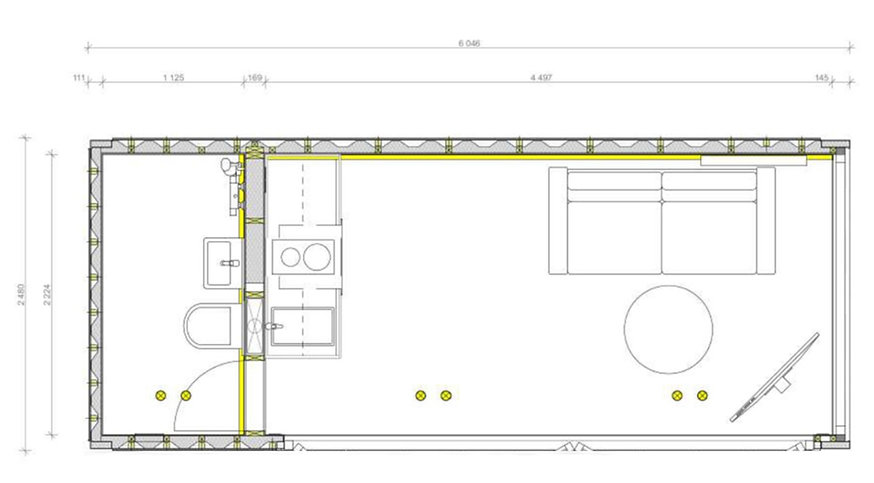 Tiny-House-Interieur aus recyceltem Öko-Container Bliss / 13,2 m2