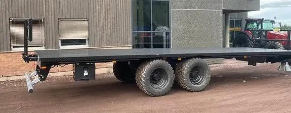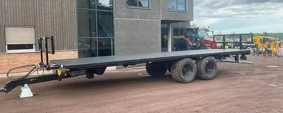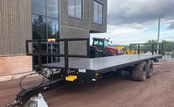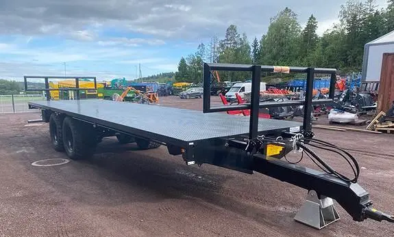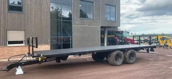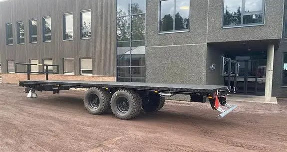 Der Auflieger hat eine Ebenenlänge von 9,3 Metern und eine Nutzlast von 18.000 kg. Das Leergewicht dieses Wagens beträgt 4300 kg.